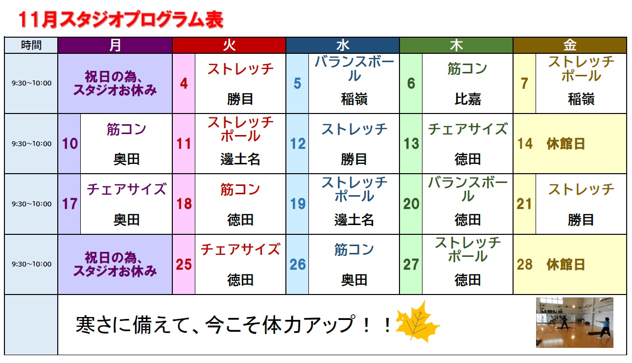 【11月のご入会キャンペーン】   11月1日より、11月限定好評に付き期間延長!!秋こそ運動今がチャン...