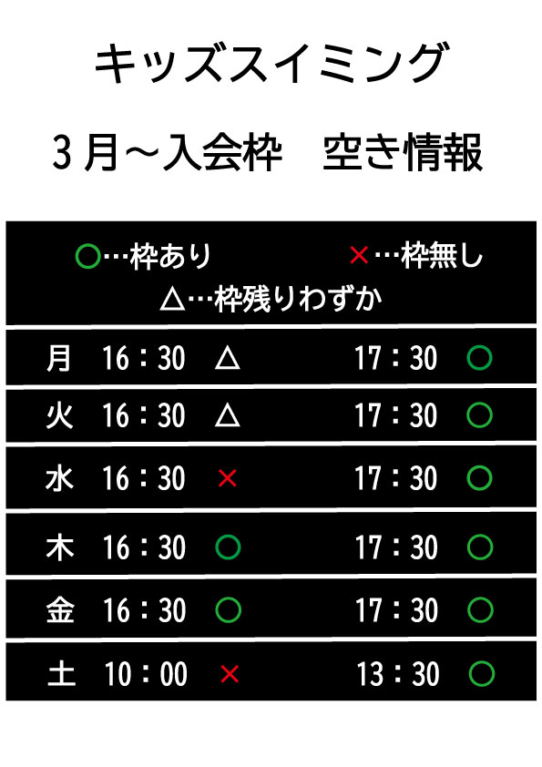 キッズスイミング空きクラス情報!