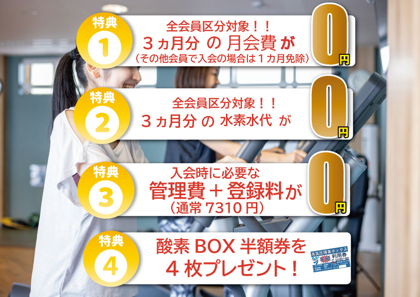 全会員対象、水素水込みの入会で