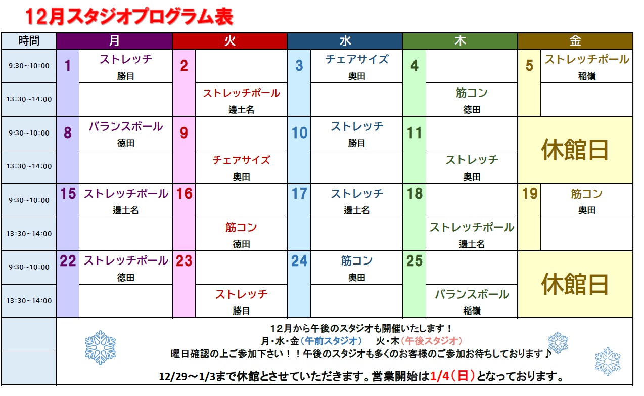 12月より午後のスタジオプログラムも開催いたします!!